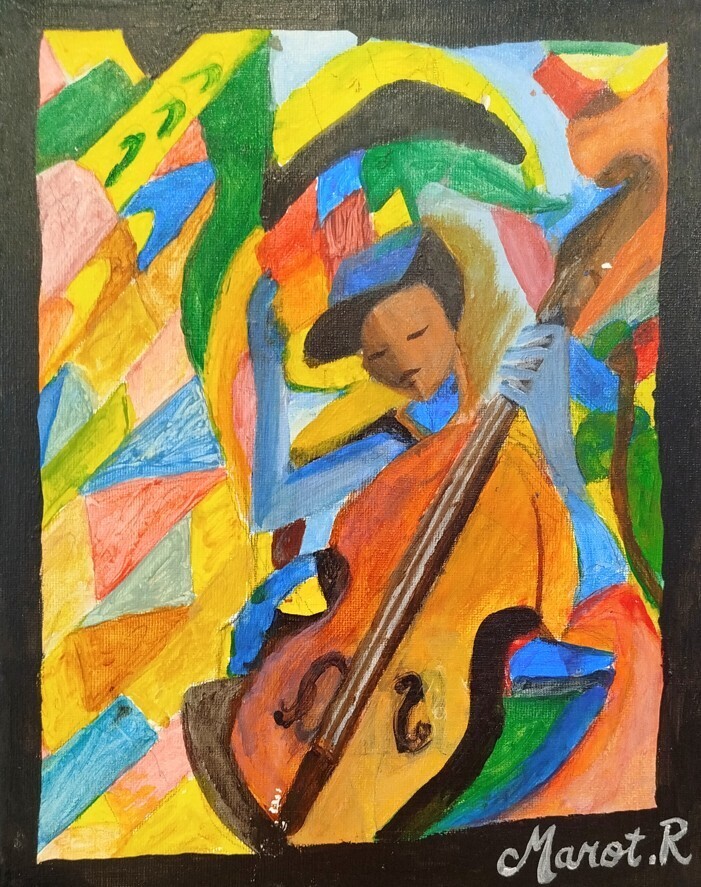 Ancienne modéliste et couturière, Raymonde Marot, 91 ans, a longtemps exprimé sa créativité dans la mode avant de se tourner vers la peinture en 2022, après son arrivée à la résidence Stella Port Provence à la Seyne-sur-Mer. Pour le concours, elle a réalisé une toile colorée représentant un musicien de jazz, en hommage à son mari guitariste et à ses souvenirs de danseuse de rock acrobatique. Le jury a attribué le second prix à ce tableau, le jugeant « extrêmement créatif, particulièrement décoratif et coloré ».